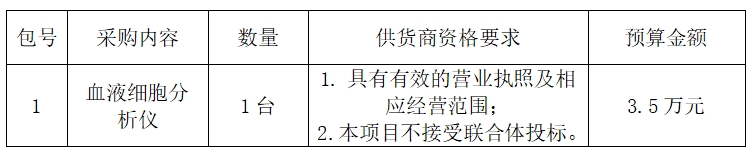采购项目名称:聊城市眼科医院血液细胞分析仪采购项目